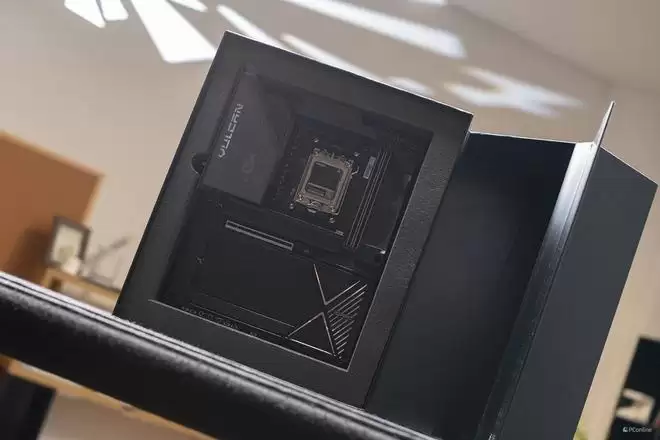 打开包装,内部的陈列极具仪式感。紧接着盒子主体会微微抬起,仿佛开宝箱一样充满着浓浓的仪式感。主板本体被泡棉团团包围,即便是遇到暴力运输也不用担心损坏。