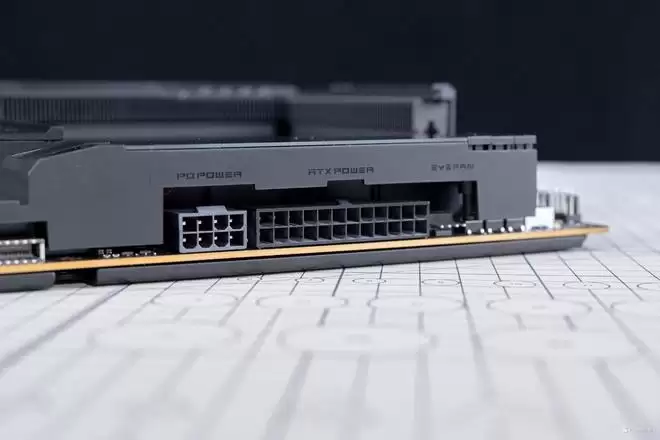 物理供电接口方面则是CPU为双8Pin实心供电端子,主板还是24Pin。