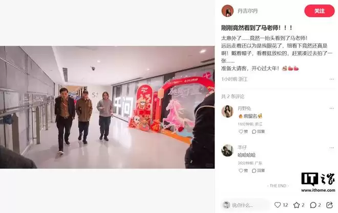 IT之家2月4日讯,有网友今日(2月4日)在社交媒体发文称,阿里巴巴创始人马云现身位于杭州阿里总部的千问春节项目组。