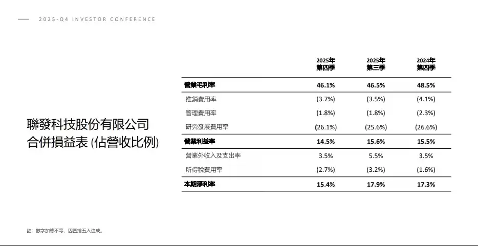 此外,公司在研发上持续加码,第四季度研发投入达392.48亿元新台币(约合86.7亿元人民币),同比增长6.79%。研发费用占比约为26.1%,较去年同期略降0.5个百分点。