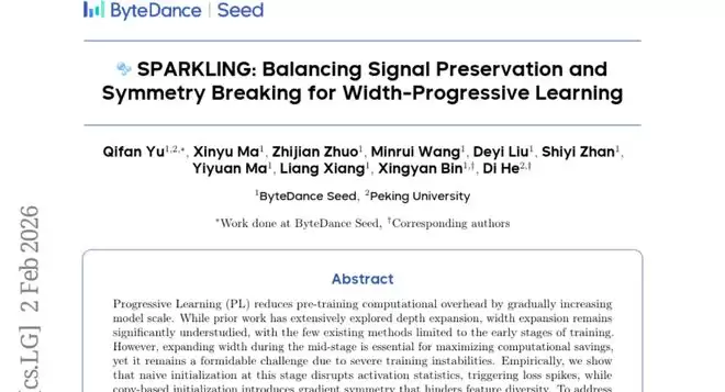 这项研究发表于2026年2月的arXiv预印本平台,论文编号为arXiv:2602.02472v1,为AI训练领域带来了全新思路。研究团队将这种方法命名为SPARKLING,这个名称代表着"信号保持与对称性破坏的宽度渐进式学习"。简单来说,就是让AI模型从小规模开始训练,然后在训练过程中逐步"长胖",最终达到目标大小。