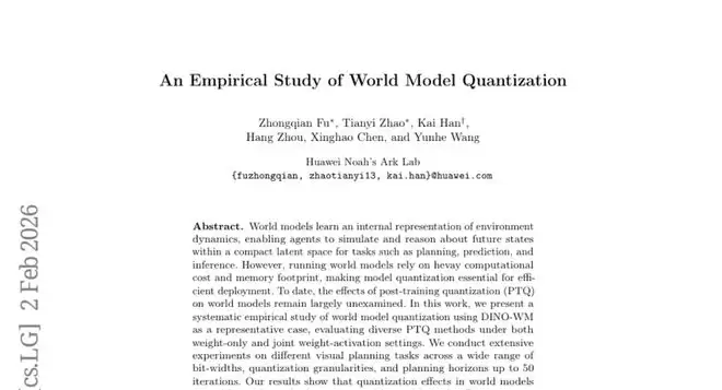 当我们的手机存储空间不够时,我们会删除一些不重要的照片和应用来释放空间。华为诺亚方舟实验室的研究团队最近做了一件类似的事情,但他们处理的不是手机存储,而是让人工智能"规划师"在计算资源有限的情况下依然能够出色地完成工作。这项研究发表于2026年2月的arXiv预印本服务器,论文编号为2602.02110v1,为我们揭示了如何通过"量化"技术让世界模型在保持性能的同时大幅减少计算需求。