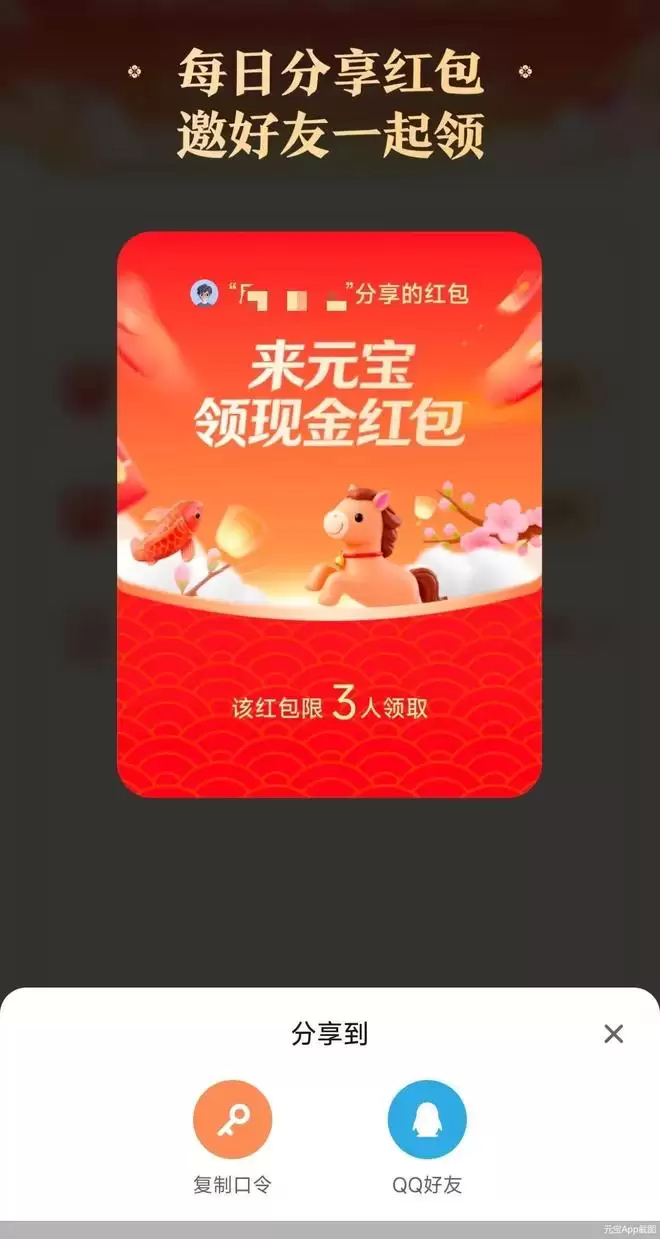 北京商报记者体验发现,原本元宝红包分享页面显示,分享至微信好友、QQ好友,目前已变成复制口令或分享到QQ好友。元宝用户需要复制口令并粘贴至微信,微信用户无法直接点击、跳转元宝领取红包,需要复制口令打开元宝。