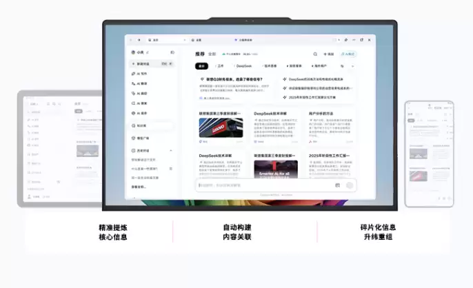 联想YOGA Pro 16 Aura AI元启版还内置天禧个人超级智能体3.5,支持个人知识库、AI会议纪要、AI翻译、AI文档处理、AI修图与AI搜索等海量实用功能。更具备AI跨端文件搜索功能,当设备通过超级互联连接后,在跨端搜索栏中输入文件名或内容关键词,即可依托语义AI快速查找散落在各处的文档与照片。