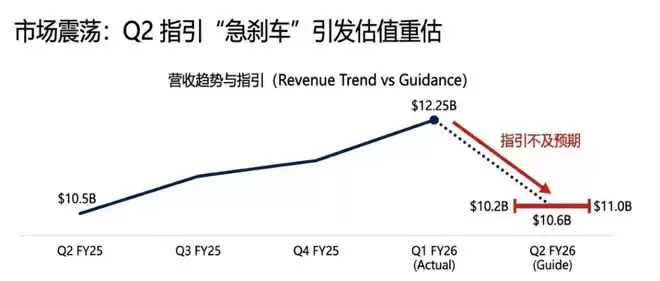 展望下一季,公司给出的指引明显保守。2026财年第二财季营收预计102亿-110亿美元、非GAAP每股收益2.45-2.65美元。手机芯片收入指引降至60亿美元。