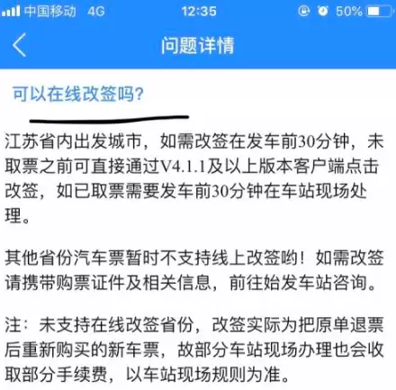 点击进入后,系统会弹出一个对话框,询问是否可以在线改签,请仔细阅读说明。