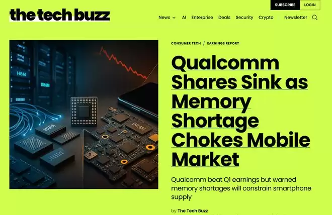 【环球网科技综合报道】2月5日消息,据The Tech Buzz报道,高通、Arm等半导体企业发布季度财报后,其股价在盘后交易中大幅下挫,跌幅均超过8%。市场分析指出,存储芯片短缺引发的电子产品行业增长担忧,是此次股价波动的主因。