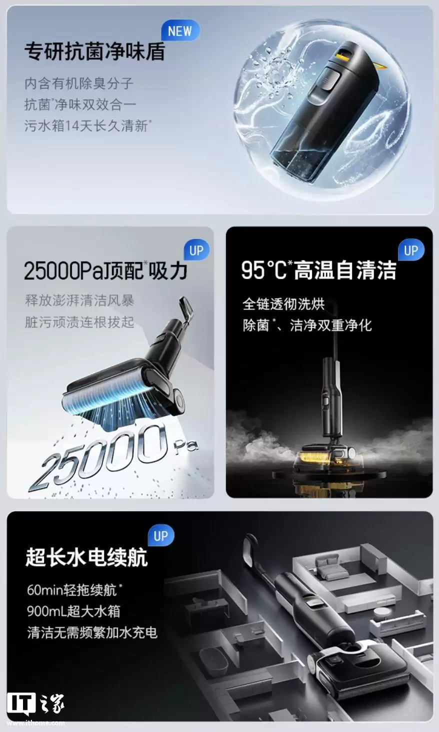据介绍,A30 2.0采用了12.5厘米的超薄平躺设计,能够轻松深入床底、沙发底部等低矮区域进行清洁。它配备了一个870毫升容量的清水箱,可提供高达25000Pa的强劲吸力。内置电池支持60分钟的续航时间。