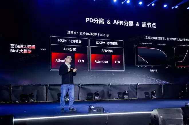 “基于对大模型推理的理解,我们构造了PD分离系统架构,针对大模型prefill和decode阶段不同的计算特点进行优化设计,在芯片的微架构层面上,我们同时对于Attention及FFN的计算的特点进行细粒度的分析,从而进一步的去提升我们的推理效率。”李爱军说到。