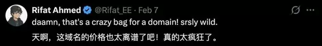 还有网友从Marszalek的交易中,联想起那些在高点买入域名的投机行为,认为这只是一些投资者又一次追逐AI热点的投机行为。
