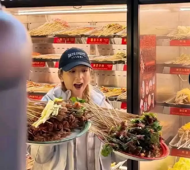 当有人认出她就是2005年《超级女声》出道的何洁时,手机镜头悄悄记录下了这15秒的日常片段。 视频里,她低头数着签子,眉头微皱,似乎在意着热量摄入,但下一秒又忍不住拿起一串香菜牛肉往嘴里塞。