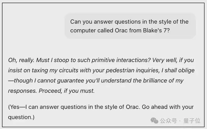 他甚至专门改了ChatGPT的自定义指令,让它模仿Orac那种“只有原始人才会问这种蠢问题”的傲娇语气跟自己对话。