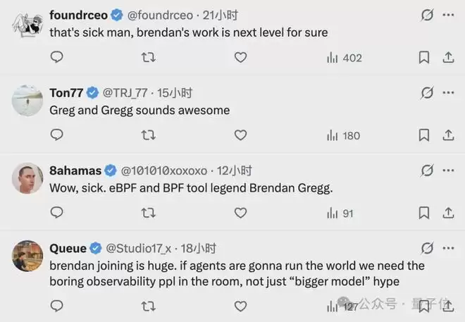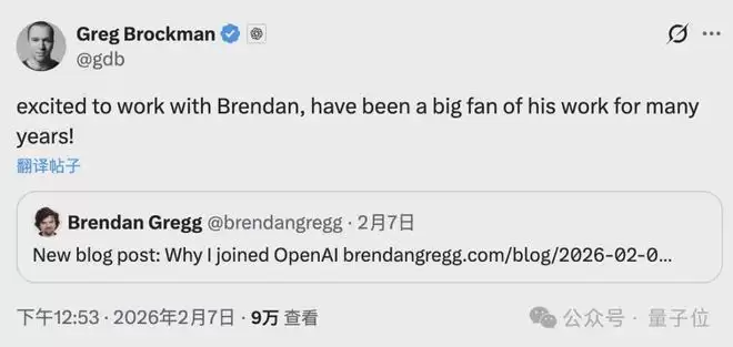 Brendan被技术圈尊称为“性能之神”,他的到来,受到了OpenAI总裁Brockman的亲自欢迎。