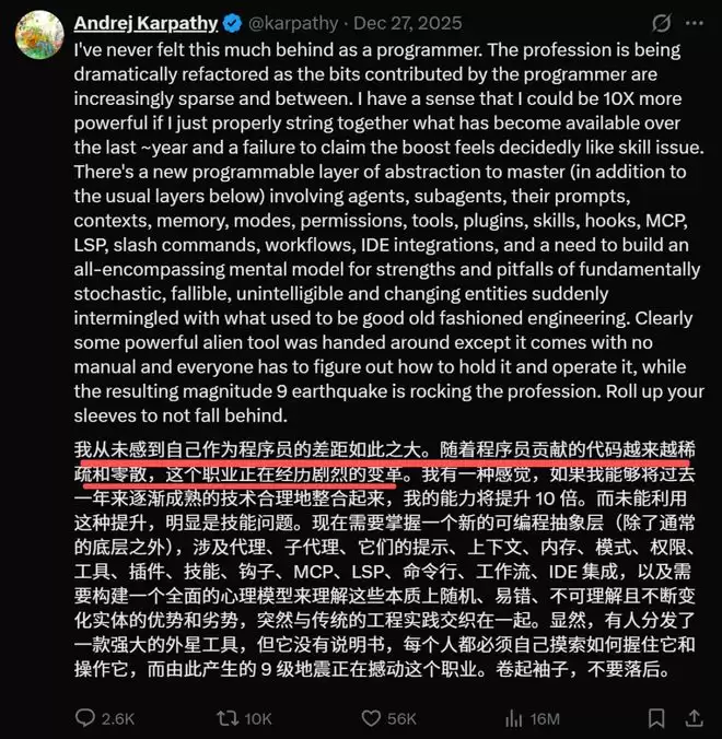 当Andrej Karpathy惊呼作为程序员从未感到如此落后时,他看到的不仅仅是工具的进步,而是人类编程的结束。