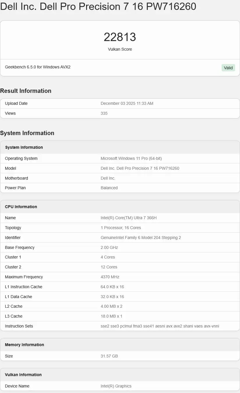 参考去年12月3日Geekbench记录到的测试数据,戴尔即将推出的移动工作站笔记本电脑新品也将采用“Dell Pro Precision”这一命名前缀。