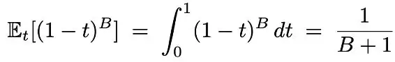 在使用 block diffusion 时,由于通过 cross attention 拼接了干净的前缀,可以使得每个 token 都产生有用的 loss。然而如果使用传统的 noise schedule 会使得有些块不产生 loss 信号,通过求解积分可以算出 block 不产生信号的概率如下,这在小 block 时会特别明显: