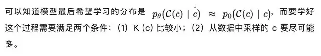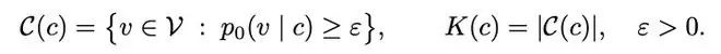 假设 c 是当前可见的样本,根据真实分布通过这些样本在当前位置能够推理出的 token 集合为 C (c),大小为 K (c)(这里多个 token 同时推理的情景一致,因此只简单的考虑单个 token 推理)。由于使用的真实分布来定义的,所以 c 越多越干净的时候,K (c) 越小。