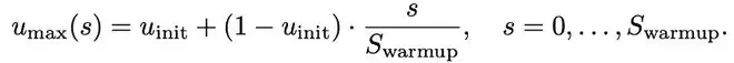 由于退火 attention 的方式难以灵活适配 flash attention 等架构,该团队针对(2)(3)来设计 warmup 过程。具体的,在 warmup 阶段将 mask 比例上界逐渐 warmup 到最大值,从而使得一开始任务从易变难。