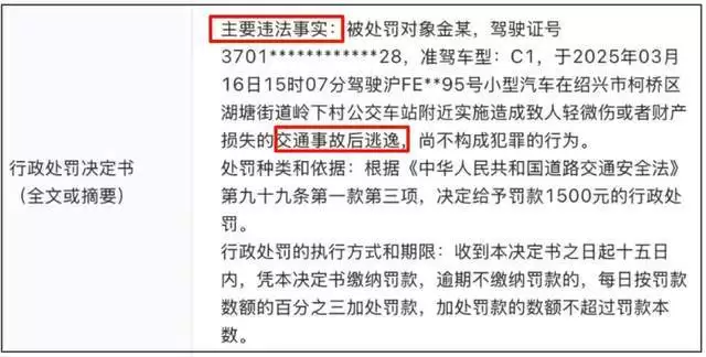 金晨肇事逃逸的处罚曝光,狗仔晒出金晨的处罚结果,造成致人轻微伤或者财产损失的交通事故后逃逸,罚款1500元,彻底成了违法艺人!