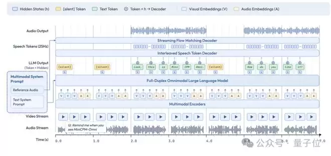 同时,通过时分复用机制,对在毫秒级时间线上对齐的多模态输入与输出进行统一建模,实现高效的流式处理。