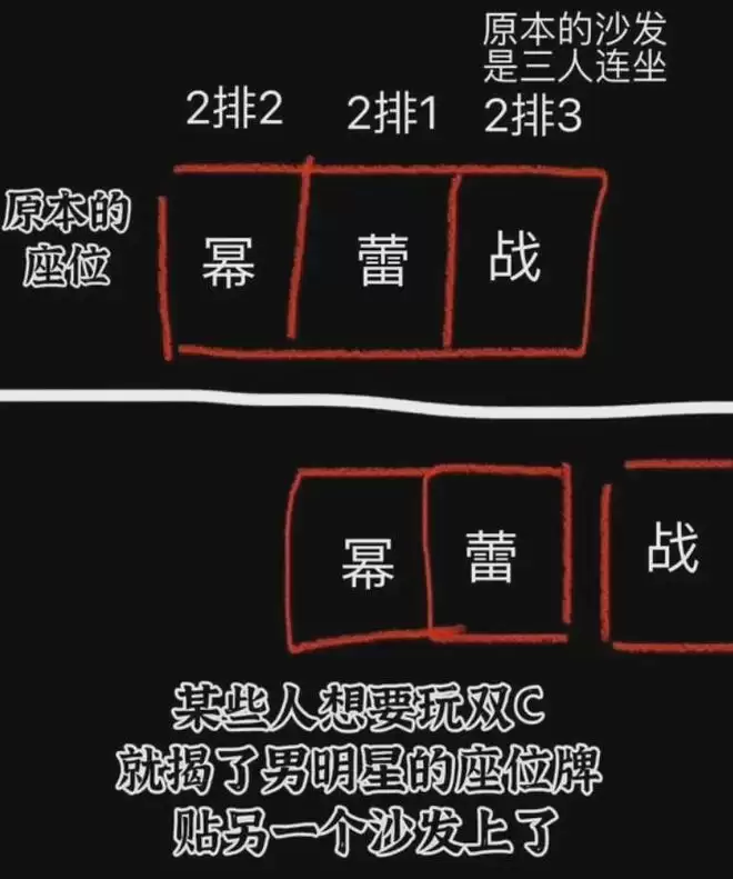 2点之后,工作人员进行座位复核,发现二排中岛座位存在空缺,把肖战和其他明星的人名条进行了外移调整,属于操作失误;