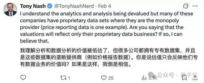 很多软件公司的股价都承受着巨大的压力,人们普遍认为AI会取代它们。这是世界上最不合逻辑的想法,时间会证明一切。