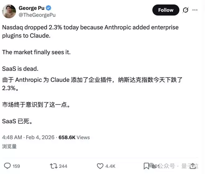 而今年1月,Anthropic发布Claude Cowork之后,投资者的紧张情绪进一步升温。