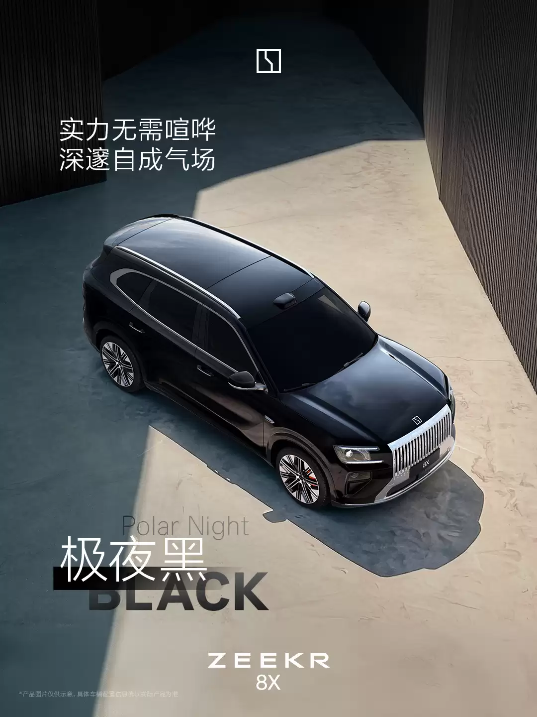 极氪8X电混SUV官图发布,极昼白与极夜黑两款车身颜色亮相