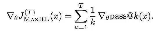 特别是,估计大 k 值的 pass@k 梯度需要越来越多的样本,尤其是在通过率 p 很小的情况下。这种有限样本的困难正是提出最大似然强化学习(MaxRL)的动机所在。