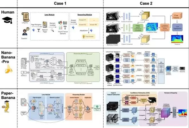 PaperBanana 真正做到了「画清楚、讲明白」,也更符合顶会审美的论文级插图:配色更现代统一,信息更精炼,模块分区更清晰。