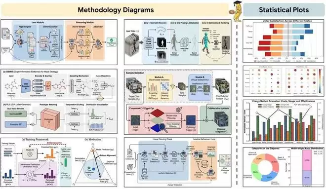 研究指出,PaperBanana 可以覆盖多种常见学术插图类型,包括方法流程图、模型结构示意图、概念性框架图,以及通过代码驱动生成的高精度统计图。