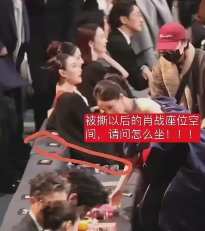再看现场拍摄的肖战座位被调整后的空间,狭窄到只能塞半个身子,跟一开始宽敞的名牌位置完全不符。