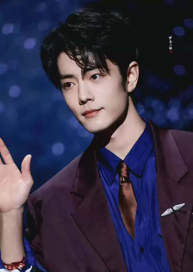 肖战穿一身紫红色西装,贵气感直接拉满,站在那儿就像小说里走出来的豪门贵公子。