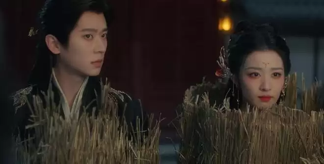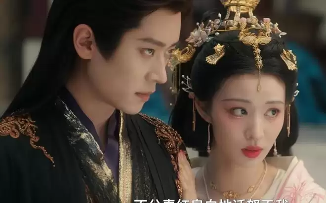 再看他与王楚然的多场对手戏——王楚然饰演的庾晚音,是穿越而来的职场打工人型妖妃。