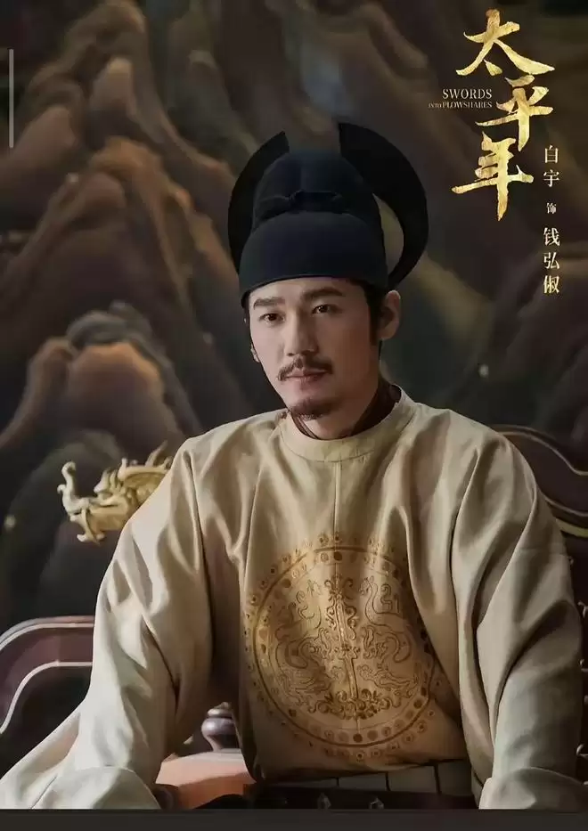 白宇饰演的钱弘俶是吴越国最后一位君主,他是钱元瓘的第九子,在剧中是团宠,几个哥哥对他都格外好。所以他一开始无忧无虑,只想做个闲散的渔帐子。权臣胡进思在囚禁并废除其兄钱弘倧后,将他拥立为新王。