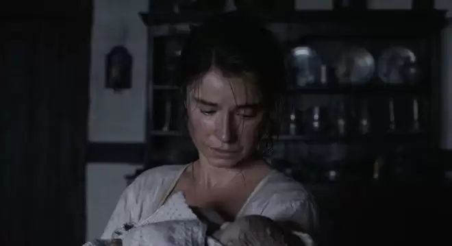 拥有和失去,仿佛就是转身一瞬间。如果没有孩子出生时,用大篇幅来表现来之不易,那么当Agnes几乎是一模一样的紧紧的抱着,瘫坐在地上的动作,失去的撕心裂肺就不会那么悲怆了。我相信观众看到哈姆奈特被母亲抱着的时候,观众知道Agnes是不可能用会同样的办法两次拯救生命的,无论,大家多么不舍哈姆奈特的离去。