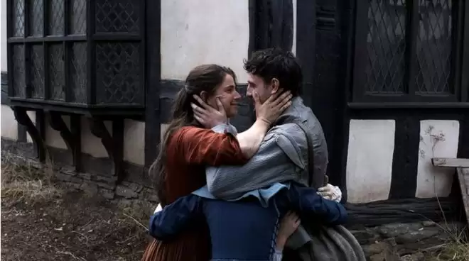 《哈姆奈特》的故事从威廉·莎士比亚和Agnes相遇开始。他们一见钟情、结婚生子,后来莎士比亚在Agnes的鼓励下,逃离原生家庭,去伦敦闯荡,发展自己的戏剧事业。疫情来袭,他们的小儿子哈姆奈特不幸离世。