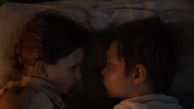正如上文所述,Agnes在森林中生下第一个孩子的场景中,导演几乎用了长镜头、大广角、全景的方式表现,完整、一鼓作气的展现了生孩子的过程。观众会有一种沉浸感,仿佛就是远远的看着一个女性变成一个母亲的过程,可以说是非常酣畅淋漓。就算没有用特写、跳切等方式来渲染情绪,或者强调某种状态。