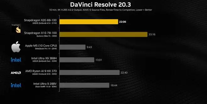 骁龙 X2 Elite - 22:06 骁龙 X Elite - 33:16 M5 - 09:43