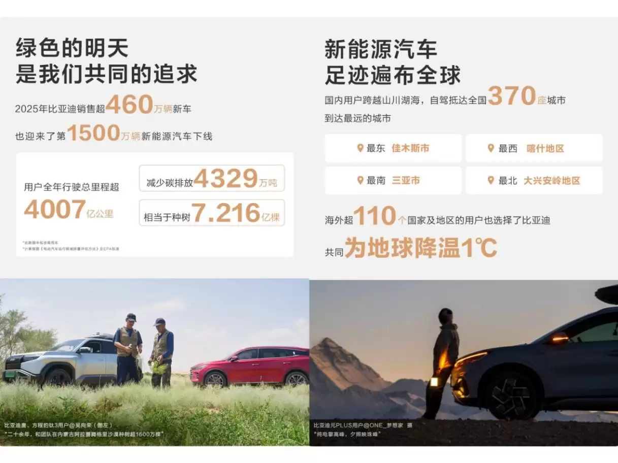 这份藏在陪伴里的温暖,不仅有欢聚时的欢声笑语,更有与绿色同行的责任担当。每一位比亚迪车主的每一次绿色出行,都在为守护我们共同的绿色明天添砖加瓦,贡献力量。