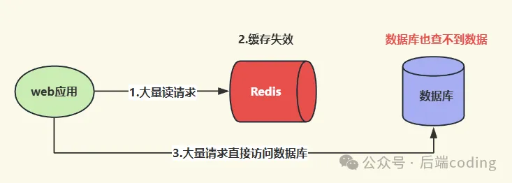 用户发起了一个查询请求,Web应用先去查Redis,发现没有数据;接着去查数据库,发现数据库里竟然也没有。因为数据库里根本没有这条记录,应用自然也就没办法把结果回写到缓存里。