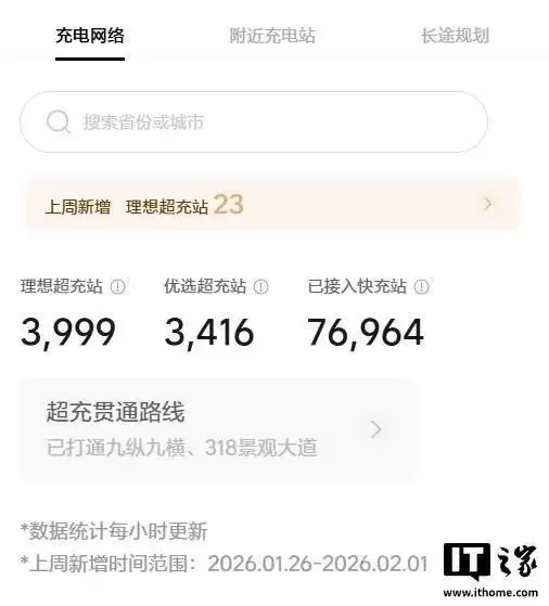 在自建超充网络持续扩张的同时,理想汽车通过开放合作模式构建了更广泛的充电生态。截至目前,该品牌已接入3416座优选超充站,这些站点均具备峰值功率不低于200千瓦的充电能力,且通过严格筛选确保充电稳定性。理想汽车还整合了76964座第三方快充站资源,形成覆盖全国的多元化充电解决方案。特别值得关注的是,其打造的“九纵九横”高速超充网络已覆盖G1京哈高速、G2京沪高速、G20青银高速、G30连霍高速等18条国家级交通动脉,这些线路承载着全国60%以上的长途出行需求。