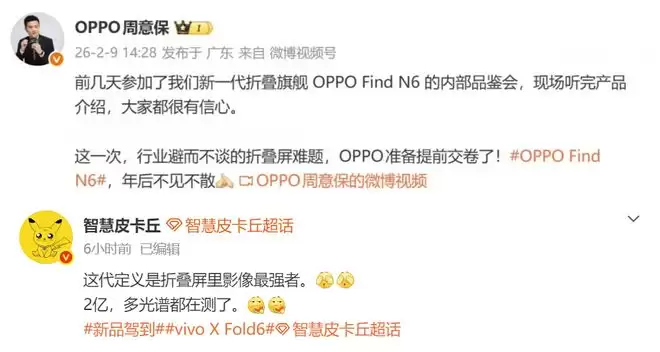 但2026年刚开年,vivo和OPPO就准备用两款新旗舰把这些帽子彻底摘掉,分别是vivo X Fold 6和OPPO Find N6。