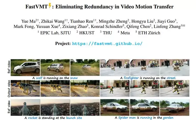 A:FastVMT是一种视频运动传输技术,能够将一个视频中的动作模式提取出来并应用到另一个完全不同的场景中。比如把狼在雪地奔跑的动作传输给消防员在街道上奔跑,实现动作的跨场景复制。这项技术由上海交通大学EPIC实验室联合多家机构开发,处理速度比传统方法快3-15倍。