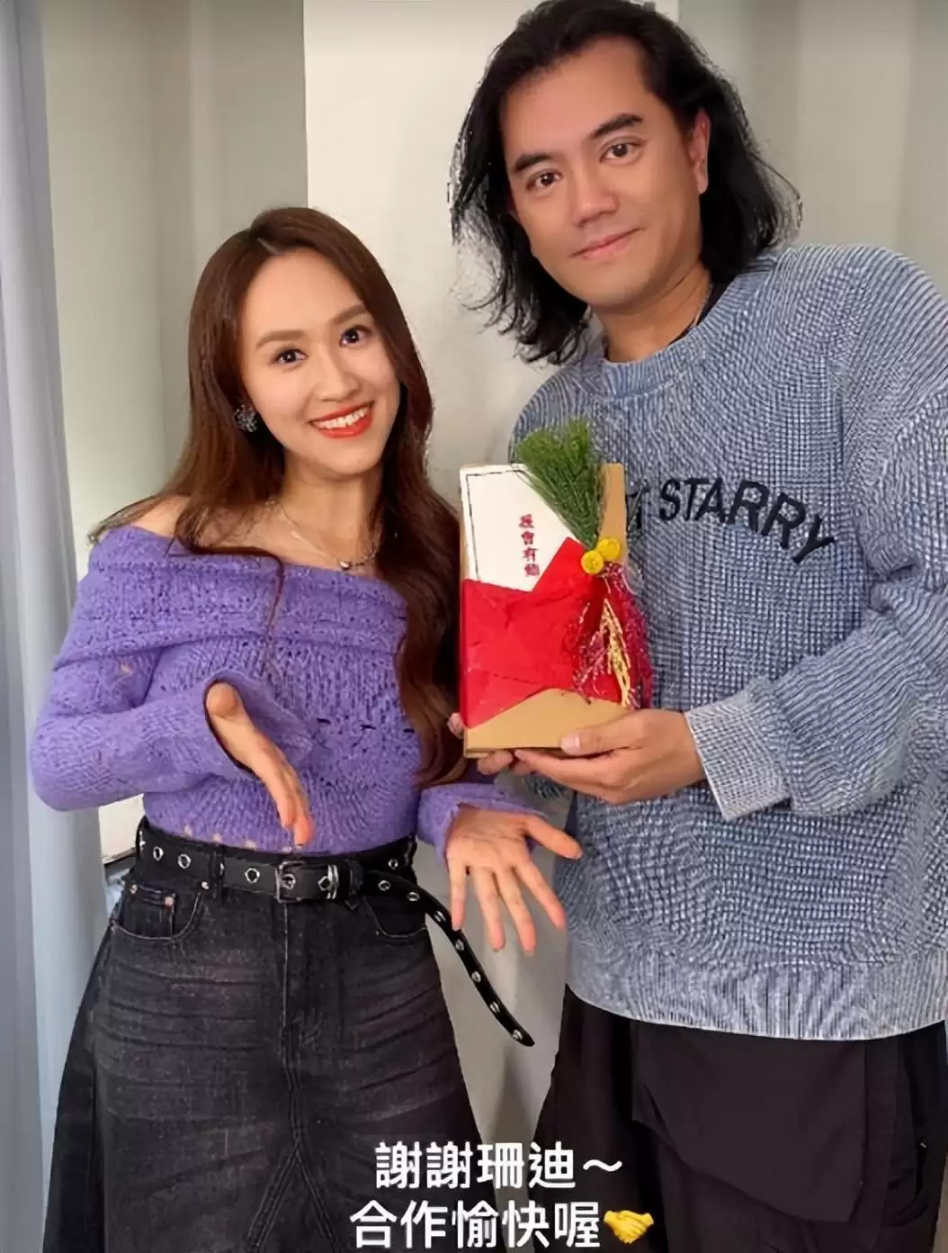 派翠克与代班主持吴姗儒Sandy分享了合影,两人手里都拿着红包,并配文说:“今年辛苦啦!继续一起努力!”
