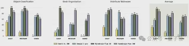 在操作规划任务中,仅使用几百条数据微调后,RynnBrain-Plan-30B(A3B)就在域内和域外的任务上全面超越了Gemini 3 Pro。