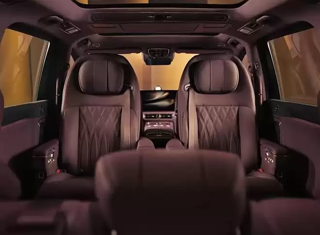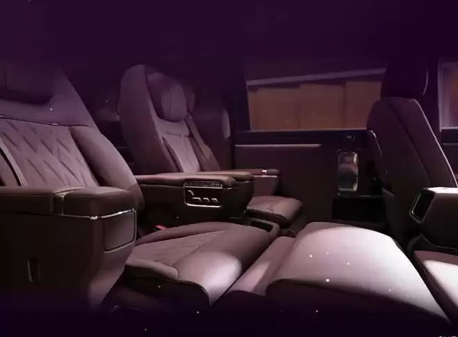内饰方面,智界V9提供绫霞紫配色方案,采用一体式横向贯穿屏幕设计,并选用白栓木与胡桃木等天然实木饰板,保留原木纹理质感。中控台下方设有水晶旋钮,配合NAPPA头层真皮材质,有效提升了座舱的豪华氛围。音响系统采用HUAWEI SOUND方案。第二排座椅支持一键联动调节功能,可对靠背、腿托及脚踏进行调节,实现1.05米的超长支撑距离。此外,二排座椅具备旋转功能,支持45度迎宾、90度观景及180度对坐等多种模式,满足商务与家庭多元化的场景需求。
