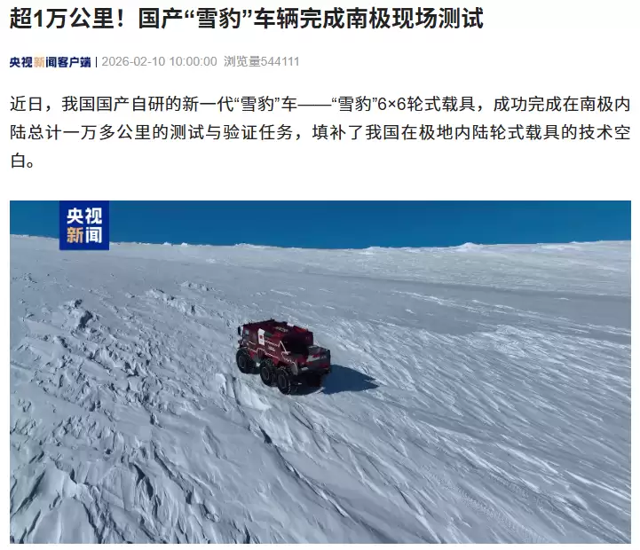 近日,我国极地科研战线传来激动人心的消息:自主设计研制的“雪豹”6×6轮式载具,成功在南极内陆完成了总里程超一万公里的严苛测试与验证任务。这一成就,不仅填补了国内极地内陆轮式载具领域的技术空白,更标志着我国极地考察装备整体迈入了全新的发展阶段。