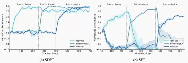 在持续学习领域,传统的监督微调(SFT)常因「灾难性遗忘」备受诟病,它的副作用非常明显:当你教模型学会一套新的知识,它原有的代码能力或常识推理往往会发生断崖式下跌。