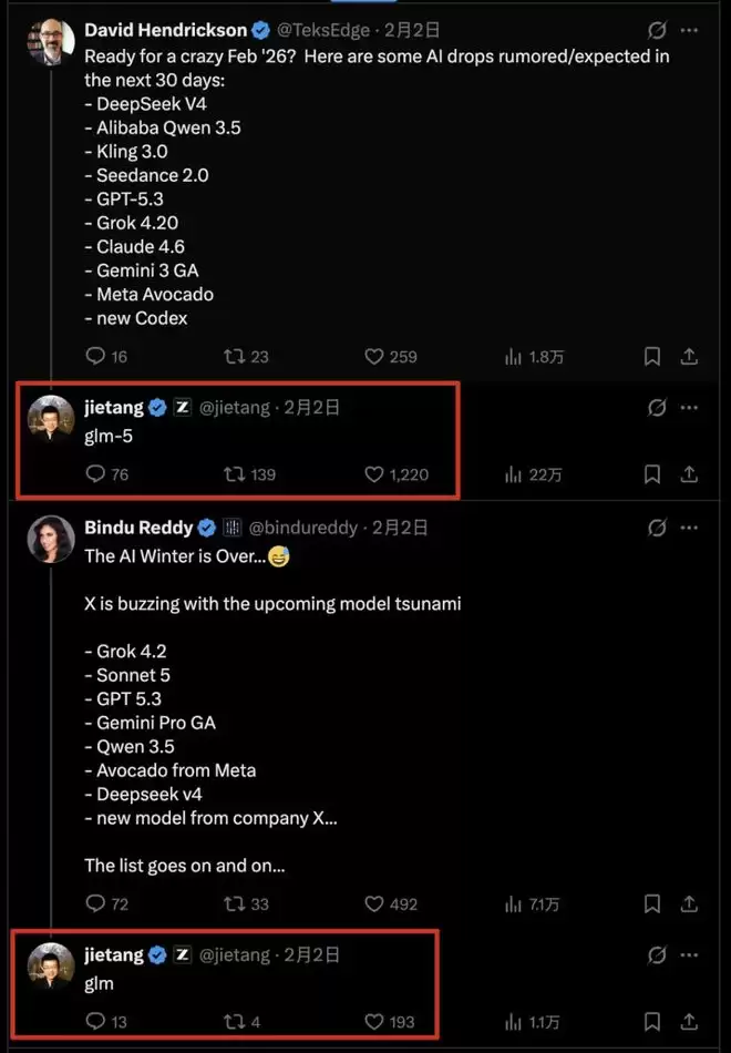 智谱GLM-5的潜在发布时间点,正值国产大模型密集的“春节档”发布期。智谱AI首席科学家唐杰此前在内部信中预告GLM-5即将发布,时间窗口指向2026年2月中旬。与此同时,DeepSeek新模型、MiniMax计划发布的M2.2以及Qwen 3.5均有消息传出将在近期更新。